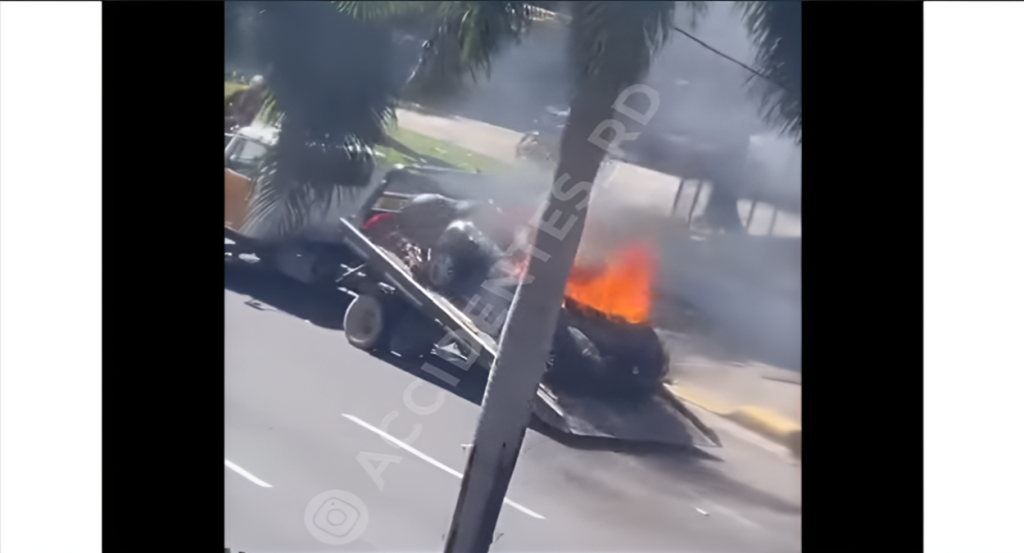 Un incidente ocurrió en el Expreso Quinto Centenario, Santo Domingo, cuando un vehículo en una grúa se incendió.